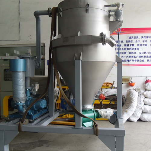 a) 真空泵通過真空輸送設備的分(fēn)離容器(qì)産生(shēng)真空。将物料從進料口通過吸料軟管與吸料口吸入。